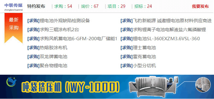 鋰電材料  |  鋰電設備  |  零部件  |  鋰電池  |  更多>